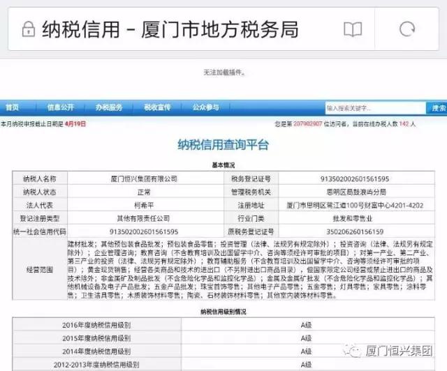 在近期公布的福建省纳税信用等级中,恒兴集团及在厦子公司厦门宝拓资源有限公司再次荣获“A级”信用评级。
