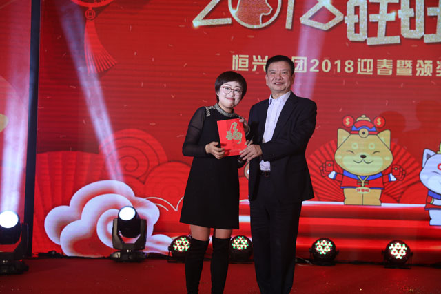 后面进行的是晚会节目现场评选环节。为秉持公正公开的原则,主持人将投票时间控制在10分钟之内。在这短暂时间里,晚会LED大屏现场播放着恒兴集团各产业、各部门、各子公司的拜年视频,来自厦门、福州、长春、新疆乃至越南等地的同仁们发来新年贺电,喜气洋洋地传递着对2018及恒兴集团的期待与祝福。拜年视频过后,工会主席洪超生为获奖代表颁发奖金,为本场辛苦演出的“演员们”送去赞许与鼓励,也为恒兴集团2018迎春暨颁奖晚会画上了圆满的句号。