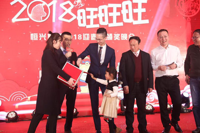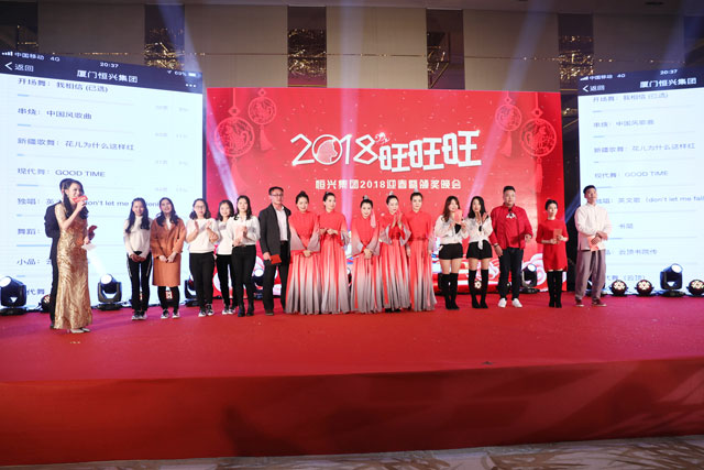 节目表演之间还穿插鼓舞人心的《2017辉煌业绩》视频播放,温馨难忘的《2017我们在一起》照片回顾,以及激动人心的幸运大抽奖环节,掀起现场一波又一波的小高潮。随后,王伟文总裁携恒兴集团中层领导献唱恒兴之歌《永恒的星座》,大家热血沸腾、团结一心、齐声合唱,让整场晚会然若演唱会现场,热闹非凡。