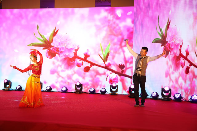 晚会分为两大流程——颁奖典礼和迎春晚会。上半场现场表彰了恒兴集团“十佳员工”、“优秀管理者”、“优秀团队”及“新疆金川公司技术进步成果”,各位高管轮番上台为获奖个人及团队颁奖,满载着赞赏与祝福。这隆重的颁奖典礼,不仅是对获奖者去过一年工作的肯定与嘉奖,也是对所有员工的激励与鼓舞。柯董亲自上台致辞对获奖者表示祝贺和感谢,并举起酒杯,在现场的欢呼声与掌声中,正式宣布晚宴开席。
