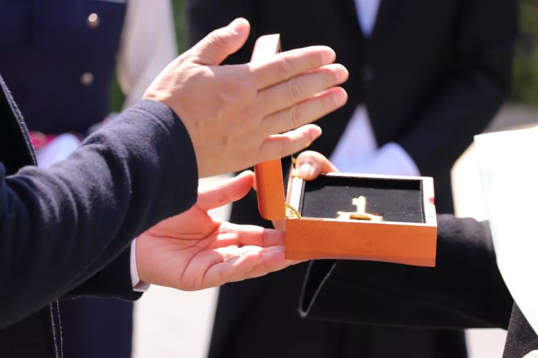 3月21日,云顶庄园格外喜庆,稍加装扮的庄园显得更加静谧美丽。业主首先来到客服中心办理交付手续,随后在管家的陪同下,来到交房现场。物业管家和维序礼至相迎,为业主营造了温暖贴心的归家仪式感,更让业主真切感受到了精细入微的服务。交房吉时,恒兴集团董事、副总裁孔宇峰亲临现场道贺,为业主送上鲜花和云顶庄园业主专属定制千足金钥匙,并正式移交了庄园钥匙。