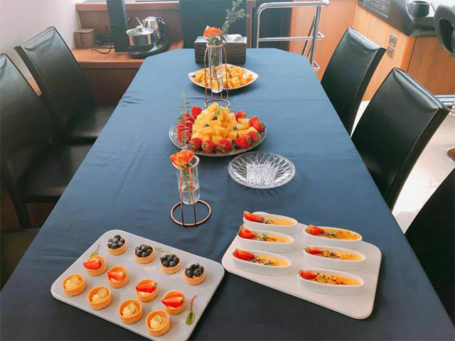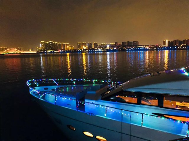 在海浪的拍打声中,夜幕渐渐降临,天空泛起点点星光和游艇码头的璀璨灯光交相辉映。游玩过后业主们聚集在一起共进晚餐,餐桌上依然充满欢声笑语,伴随着致雅唯美的旋律,和煦的海风,沁人心扉的酒香,业主友邻之间各自分享着自己在游艇上的趣事,交杯换盏,畅饮开怀,其乐融融!