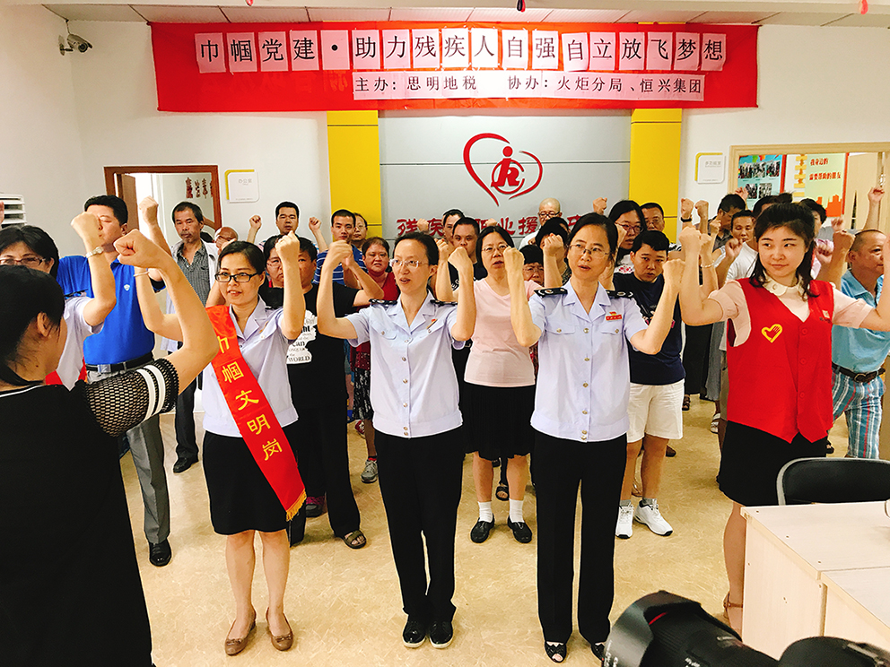 5月22日上午9:30,由思明地税主办,火炬分局和恒兴集团协办的“巾帼党建·助力残疾人自强自立放飞梦想”的爱心慰问活动在思明区开元街道残疾人职业援助中心开展。