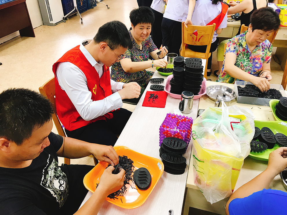 活动结束后,学员们都回到自己的座位,认真地做着手工,有的做梳子,有的做串珠,有的做网花。恒兴集团的志愿者也与他们一起,用一针一线,一钉一铆完成一个一个的作品,学员们纷纷表示:很喜欢志愿者们来看望他们,与他们聊天、做事,分享他们的人生历程,虽然他们身体有残缺,但和正常人一样渴望关爱,也希望能够用自己的双手创造财富,创造幸福的人生。