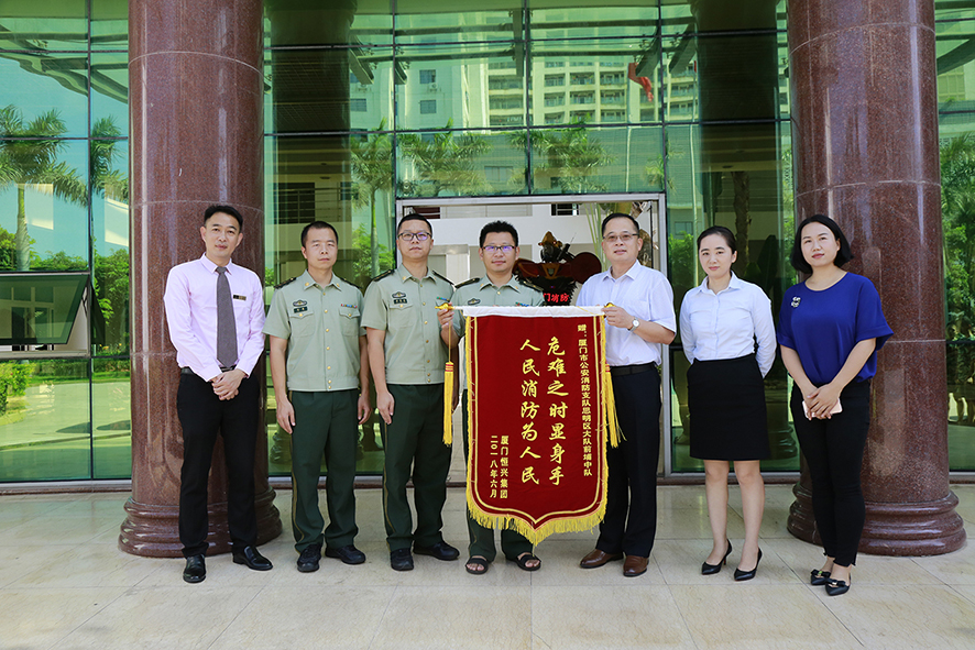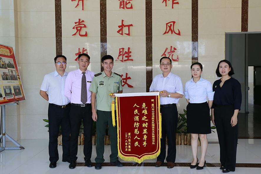 6月27日和6月28日上午,恒兴集团、集团工会、资产管理部的相关领导将写有“危难之时显身手,人民消防为人民”的锦旗和生活慰问品送到了厦门市公安消防支队思明区大队前埔中队和翔安区大队新店中队的官兵手中,表达了对消防官兵5月7日及时支援云顶庄园的感激之情。