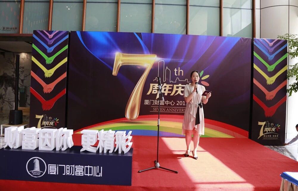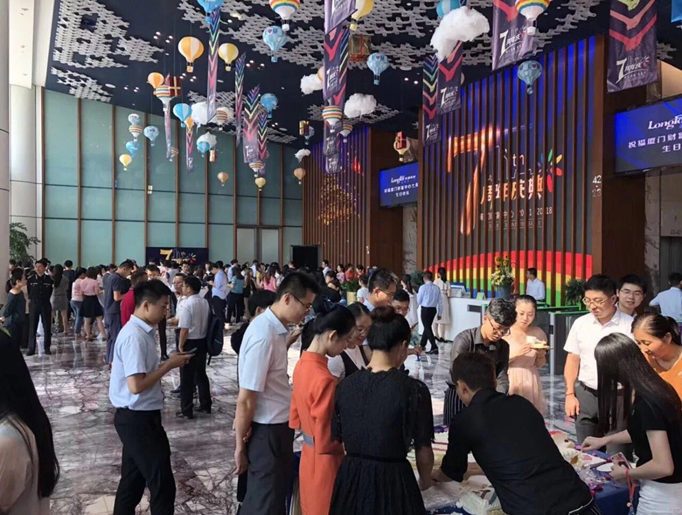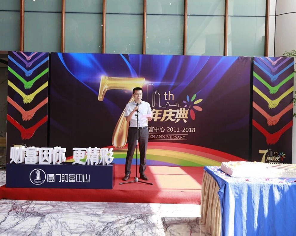 7月27日下午,厦门财富中心7周年庆典活动在财富中心一楼大堂圆满举行,来自大楼的租户代表、入驻企业员工齐聚一堂,共同欢庆财富中心7周岁生日。本次庆典活动以“财富因你,更精彩”为主题,活动内容精彩纷呈,奖品丰富,特以“感恩”为主线,通过感恩租户、感恩员工等特别环节让现场气氛温情满满,乐意融融。