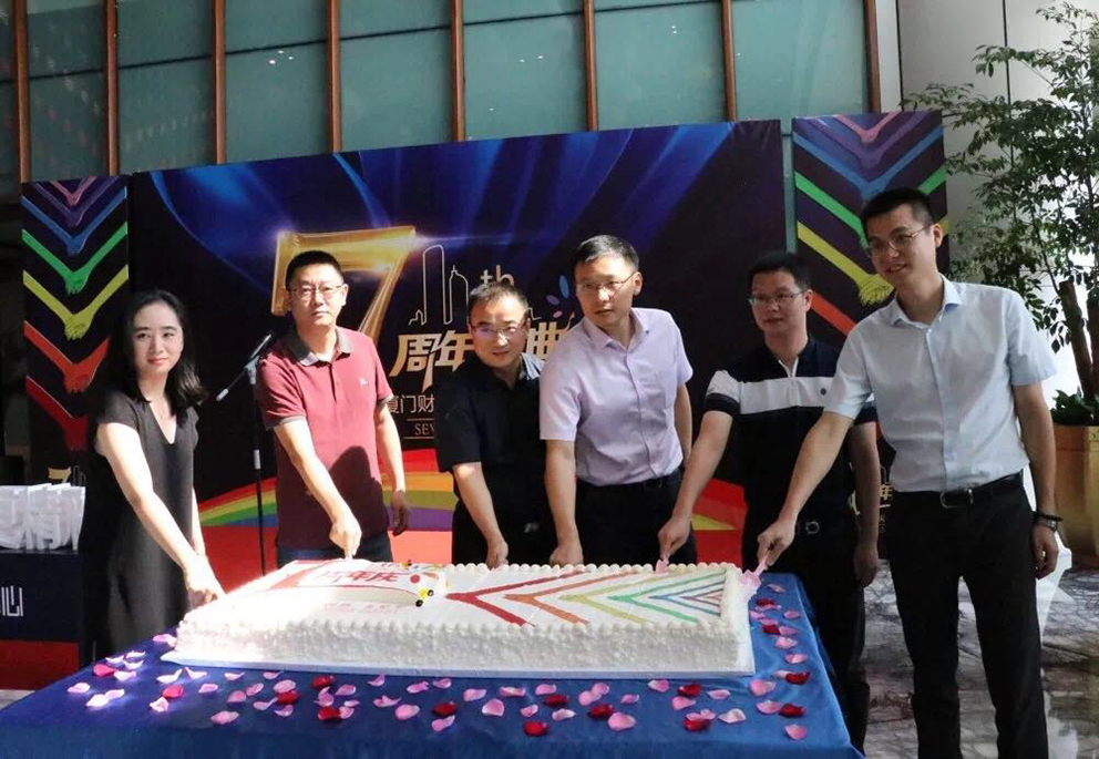 几项颁奖仪式后,伴随着欢快的生日祝福的音乐声,现场迎来了本次周年庆典活动激动人心的时刻,国家开发银行厦门市分行副行长杨建军、中国农业银行股份有限公司厦门思明支行副行长张海培、资和信电子支付有限公司厦门分公司副总经理胡洲洋、三菱电机福建区域负责人包可立同恒兴集团资产管理部总经理卢海、财富中心招商主任黄熹在现场所有租户代表和企业员工见证下共同切开了财富中心7周年的生日蛋糕,祝愿财富中心7周年生日快乐,未来越来越好;也祝愿财富中心所有的入驻企业能够蒸蒸日上。