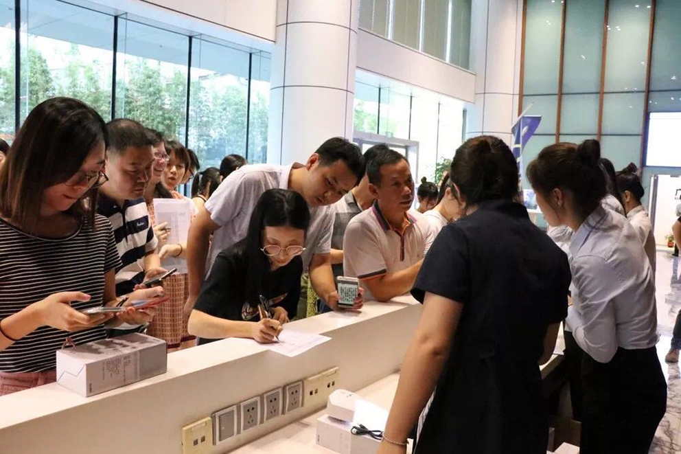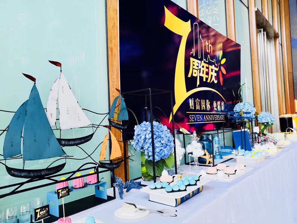 舞台前大家愉快的分享着生日蛋糕,大堂的另一侧的下午茶时光也开始热闹上演。慕斯方块拼心形慕斯杯、迷你小汉堡、RIO酒冻、鲜果瑞士卷、法式喷砂模具慕斯、水果拼盘及各色果汁等美味茶歇,大家在优雅的音乐中享受着美食,悉心品味、愉快交谈,暂别工作烦忧,忙里偷闲放松心情。在后大堂一“7”送祝福——朋友圈送祝福有礼环节,现场准备了许多精美礼品,大家把对财富中心的生日祝福发到朋友圈即可兑换礼品,现场人头攒动,热闹非凡。整个大堂处处洋溢着愉快氛围和欢声笑语,享受着财富中心周年庆带来的轻松盛宴。